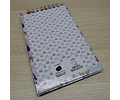 Libreta premium de tamaño 14x22 cm, con encuadernación en espiral, tapa dura y 70 hojas de papel en su interior. Además, incluye divertidas pegatinas.